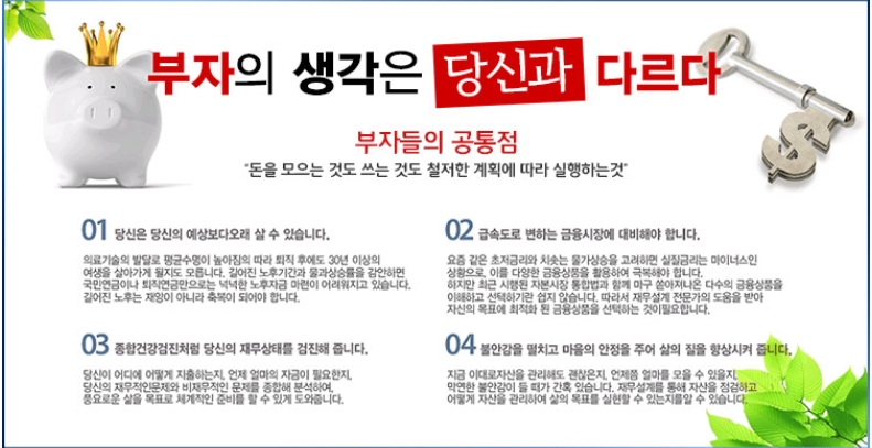 정직과 실뢰를 바탕으로 고객에게 믿임과 행복을 주고 최고의 재무설계 사이트 입니다.